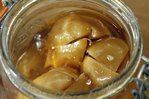 Le bocal ouvert après 10 mois de fermentation. Le jus est devenu une gelée épaisse très parfumée, acide et salée.