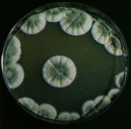 A droite : Aspergillus : ! inhalation de spores dangereuse!