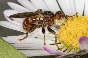 | Le Cyrte bossu | Le Dasypogon ponctué femelle | Le Dasypogon ponctué mâle | La Dioctrie à pattes rousses | Le Dorycère des graminées |