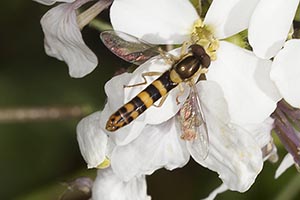 | Le Syrphe des ombelles | Le Syrphe du groseiller | Le Syrphe Leucozona à abdomen noir et blanc | Les Syrphes Leucozona à abdomen rayé | Le Syrphe porte-plume |