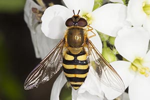 | Le Syrphe à allure de Conopide | Le Syrphe bourdon fauve | Le Syrphe brillant | Le Syrphe ceinturé | Le Syrphe des corolles |