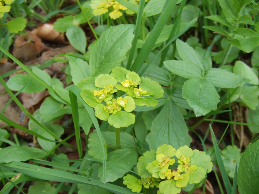 opposite-leaved golden-saxifrage ; erba milza con foglie opposte ; dorine à feuilles opposées ; Gegenblättriges Milzkraut ; småbladet milturt ; paarbladig goudveil ; krizosplenio parfolia ; orpudro parfolia ; Chrysosplenium oppositifolium ; gullpudra ; kustgullpudra ; eglyn cyferbynddail