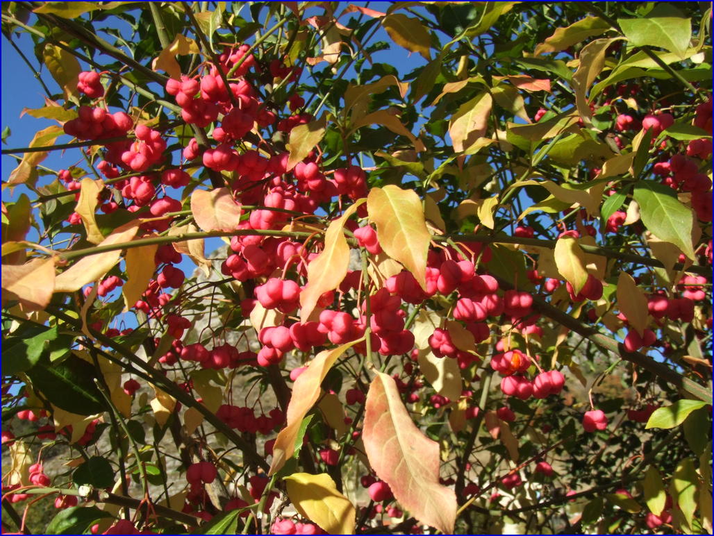 spindle tree ; common spindle ; European spindle ; spindle ; evonimo europeo ; fusaggine ; berretta del prete ; bonetero europeo ; fusain ; bonnet-d'évêque ; fusain d'Europe ; bonnet-de prêtre ; bonnet carré ; bois carré ; Pfaffenhütchen ; Gewöhnliches Pfaffenhütchen ; Wilde Kardinaalsmuts ; gwezenn-werzhid ; evònim ; benved ; kardinaalshoed ; kardinaalsmuts ; sorvarinpensas ; Euonymus europaeus ; spolebusk ; evônimo ; benved ; piswydden