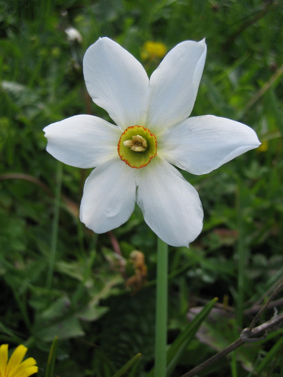 pheasant's-eye daffodil ; poet's narcissus ; narciso selvatico ; tragapán ; narciso poético ; narcisse des poètes ; jeannette ; Dichter-Narzisse ; Weiße Narzisse ; louzaouenn ar werc'hez ; grandalla ; pinse-lilje ; ægte pinselilje ; dichtersnarcis ; witte narcis ; valkonarsissi ; Narcissus poeticus ; pinselilje ; gottrausa ; pingstlilja ; cenhinen-Bedr y beirdd
