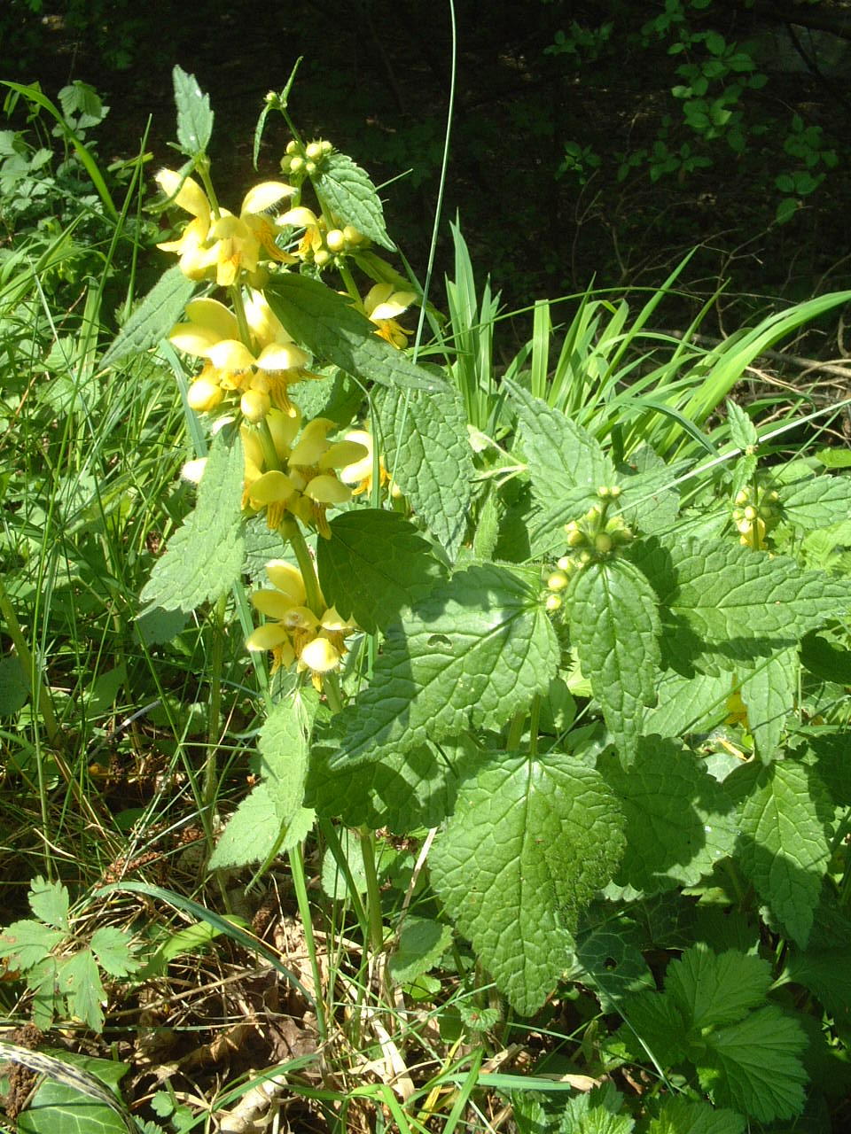 yellow archangel ; yellow dead nettle ; ortica mora ; ortiga muerta amarilla ; lamier jaune ; ortie jaune ; lamier du Gargano ; Echte Goldnessel ; Gelbe Taubnessel ; ortiga groga ; ortiga morta ; guldnælde ; almindelig guldnælde ; barsvælg ; gul døvnælde ; gele dovenetel ; hennepnetel soort ; Lamium galeobdolon ; Lamiastrum gaeobdolon ; Galeobdolon luteum ; gulltvitann ; gulltvetann ; gulplister