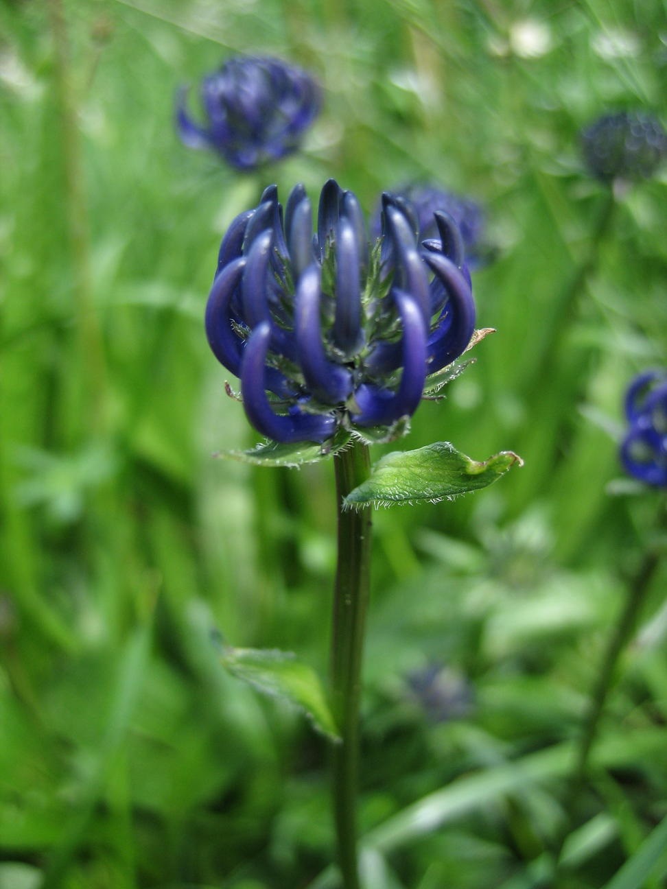 round-headed rampion ; raponzolo orbiculare ; raiponce globulaire ; raiponce globuleuse ; Kugelige Teufelskralle ; Rundkopf-Teufelskralle ; Kopfige Teufelskrallen ; Kugel-Teufelskralle ; fiteuma orbicular ; bolrapunzel ; fiteu˘mo largˆfolia ; Phyteuma orbiculare ; cyrnogyn pengrwn