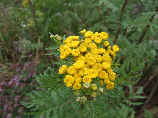tansy ; golden buttons ; bitter-buttons ; parsley fern ; tanaceto ; atanasia ; lombriguera ; hierba lombriguera ; hierba de Santa María ; tanaisie ; tanacée ; athanase ; barbotine ; herbe amère ; herbe de Saint Marc ; herbe aux vers ; herbe aux mites ; herbe aux coqs ; sent-bon ; Gemeiner Rainfarn ; tanaceto; erva-de-santa-maria; catinga-de-mulata; atanasia-das-boticas; tanásia; tasneira; erva-contra-vermes ; gwaz ; arwaz ; tanarida ; herba cuquera ; rejnfan ; boerenwormkruid ; krizantemo verma ; vermoherbo ; tanaceto ; pietaryrtti ; τανάτσετο ; Tanacetum vulgare ; Chrysanthemum vulgare ; reinfann ; كاسنی برى تلخ مزه ; wrotycz zwyczajny ; wrotycz pospolity ; catinga-de-mulata ; renfana ; munkrenfana ; gubbaskägg ; tansi