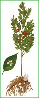 Déconseillé en cas de tension artérielle élevée. Buisson des bois et des friches à feuilles persistantes de 0.75 m dont on utilise le rhizome. Le fragon petit houx est efficace pour le traitement des varices, des hémorroïdes, en cas de mauvaise circulation aux extrémités (mains et pieds). Egalement : Troubles de la circulation veineuse.
