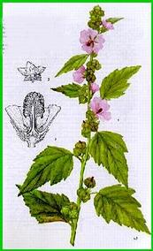 Plante vivace de 0,50 à 1,50 m poussant sur les bords des cours d'eau dont on utilise les racines et les fleurs. La guimauve calme l'inflammation des muqueuses (bronchites rhume toux laryngite trachéite gastrite entérite cystite ...) Ses vertus adoucissantes en font aussi un véritable produit de beauté en usage externe pour les peaux sèches. Egalement en usage externe : Stomatite, aphtes, angine, couperose, abcès, furoncles, affections oculaires. En décoction une cuillère à dessert de fleurs ou racines coupées par tasse faire bouillir 5 minutes ; 3 tasses par jour. En décoction pour les gargarismes, lavages, compresses, une poignée de racines coupées pour un litre d'eau faire bouillir 10 minutes. Laisser macérer une nuit 25 g de racine en morceaux dans 1 litre d'eau froide filtrer et boire 3 tasses par jour.