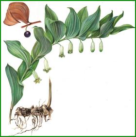 Ne pas utiliser en usage interne, les baies sont toxiques. Plante vivace de 0,50 m le plus souvent cultivée dont on utilise le rhizome. Utilisé en usage externe depuis l'antiquité le sceau-de-Salomon a la réputation d'atténuer les contusions et stimuler la réparation des tissus, en cataplasme le rhizome a une action astringente et calmante qui accélère la cicatrisation. La racine cuite sans eau et réduite en pâte, fait mûrir panaris, abcès, anthrax, etc. Cataplasmes de feuilles sur les hernies pour les réduire.