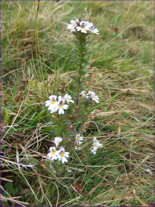 eyebright ; common eyebright ; drug eyebright ; glossy eyebright ; large-flowered eyebrigh ; eufrasia ; euphraise ; casse-lunettes ; luminet ; herbe aux myopes ; délices-des-yeux ; Augentrost ; Großer Augentrost ; Augentrostkraut ; Wiesen-Augentrost ; sivi-red ; louzaouenn-an-daoulagad ; kalk-øjentrøst ; ogentroost ; beklierde ogentroost ; makeblijde ; krijtogentroost ; silmäruoho ; Euphrasia officinalis ; Euphrasia rostkoviana ; storaugentrøst ; eufrásia ; effros ; llygad Crist