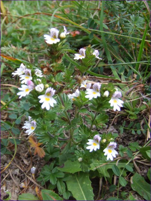 eyebright ; common eyebright ; drug eyebright ; glossy eyebright ; large-flowered eyebrigh ; eufrasia ; euphraise ; casse-lunettes ; luminet ; herbe aux myopes ; délices-des-yeux ; Augentrost ; Großer Augentrost ; Augentrostkraut ; Wiesen-Augentrost ; sivi-red ; louzaouenn-an-daoulagad ; kalk-øjentrøst ; ogentroost ; beklierde ogentroost ; makeblijde ; krijtogentroost ; silmäruoho ; Euphrasia officinalis ; Euphrasia rostkoviana ; storaugentrøst ; eufrásia ; effros ; llygad Crist
