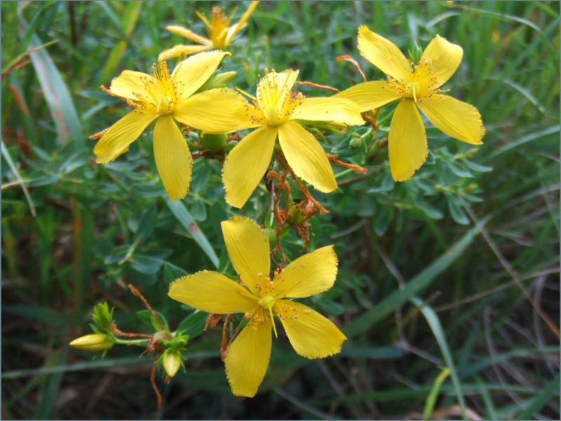 St. John's wort ; Klamath-weed ; perforate St John's-wort ; iperico ; cacciadiavoli ; millebuchi ; herba de San Giovanni ; erba trona ; hierba de San Juan ; hipérico ; sanjuanera ; hierba de las heridas ; corazoncillo ; millepertuis ; herbe aux mille trous ; herbe-percée ; herbe aux piqûres ; chasse-diable ; Johanniskraut ; Tüpfel-Johanniskraut ; Hartheu ; Tüpfel-Hartheu ; Hexenkraut ; Herrgottsblut ; Sonnwendkraut ; Santio-belar ; milazulo ; hipericão; milfurada; erva-de-são-joão ; milzoull ; kanttoull ; hipèric ; pericó groc ; herba de Sant Joan ; herba foradada ; prikbladet perikon ; sint-janskruid ; hertshooi ; kuisma ; mäkikuisma ; herba de San Xoán ; υπερικόν το διάτρητον ; βάλσαμο ; βαλσαμόχορτο ; λειχηνόχορτο ; περίκη ; χελωνόχορτο ; Hypericum perforatum ; Hypericum vulgare ; hipericâo ; erva-de-sao-joao ; milfurada ; herba de San Xuan ; johannesört ; äkta mannablod ; randpirk ; eurinllys trydwll