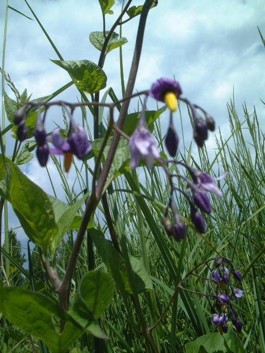 woody nightshade ; bittersweet ; dulcamara ; monella rampicante ; erba morella ; dulcamara ; douce-amère ; crève-chien ; morelle douce-amère ; herbe à la fièvre ; vigne de judée ; loque ; réglisse sauvage ; morelle grmipante ; Bittersüß ; Bittersüßer Nachtschatten ; azeri-mahats ; front-du ; front ; bittersød ; bittersød natskygge ; bitterzoet ; punakoiso ; αγριοσταφυλίτσα ; Solanum dulcamara ; slyngsøtvier ; dulcamara ; doce-amarga . ; uva-de-cão ; codwarth caled ; elinog ; manyglog