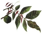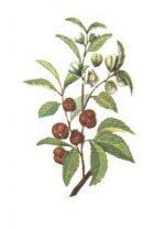 Les feuilles de noyer donnent surtout des verts qui brunissent avec l'âge. Les couleurs résistent mieux avec des feuilles sèches. Les noix, entourées de brou frais, donnent de très beaux bruns solides mais la meilleure façon est encore de faire fermenter les brous, en automne lorsque la noix tombe, dans de l'eau et de laisser fermenter plusieurs années. Un simple chauffage de ce liquide parfumé donne alors les superbes bruns des tapisseries anciennes. | vert gris, bruns et noirs |