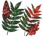 Les feuilles de Sumac, riches en tanin, donnent des gris beige avec un mordançage classique mais des violets et gris foncés proche du noir avec un nuançage à l'oxyde de fer. | gris à noir |