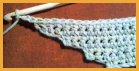 En fin de rang, faire une chaînette de mailles en l'air, mais prévoir celle-ci au début du rang précédent, pour éviter un décalage de hauteur entre les deux côtés de l'ouvrage. Faire alors, par exemple 6 m. en l'air, revenir par 3 m. coulées sur les 3 premières mailles en partant du crochet, puis sauter 3 m. avant le premier point afin de laisser les 3 m. en l'air nécessaires (il s'agit de b.) pour tourner au début du rang. Au rang suivant, c'est-à-dire à la fin du rang, le point se fera sur les m. coulées. Si l'on désire faire des augmentation à la fin de chaque rang, il faut les prévoir 2rangs d'avance, c'est-à-dire combiner les deux méthodes ci-dessus.