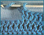 En début de rang, ne pas sauter la première maille du rang et faire le premier point dans celle-ci.