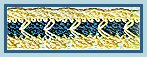 3ème rg: Prendre le fil bleu, faire 1 m.c. dans la 1ère m.s., 1 m.s. dans la m.s. suiv., *2 m. chaîn., 1 m.s. dans la br. du milieu du gr. de 3 br., 2 m.chaîn., 1 m.s. dans la m.s. suiv., 1 picot (2 m. chaîn. et faire 1 m.c. dans la 1ère chaîn.); 1 m.s. dans la m.s. suiv.*. Rép. de ( à *. Casser le fil et arrêter.