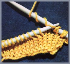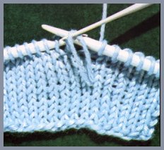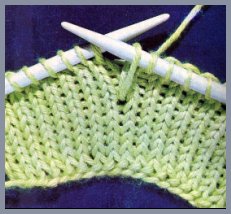 Cette maille est tricotée normalement, mais l'aiguille droite est piquée dans la maille directement en dessous de la maille qui se trouve sur l'aiguille gauche, c'est-à-dire dans la maille du rang précédent, avant que la maille soit glissée de l'aiguille gauche.
