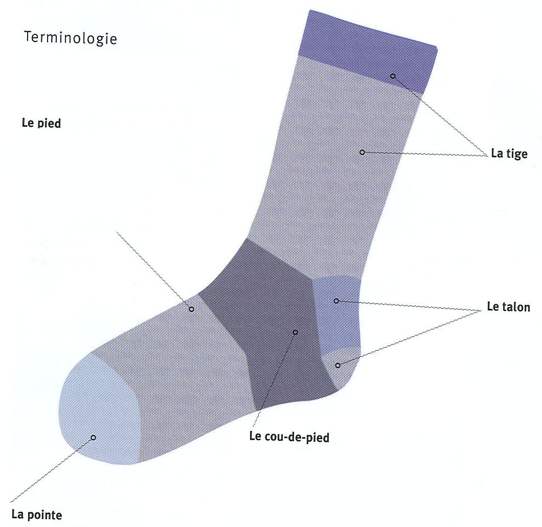 Prenez le temps de regarder le schéma d'une chaussette pour vous familiariser avec les termes correspondant à sa structure.
