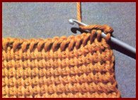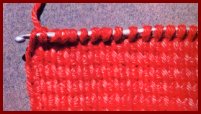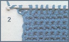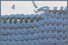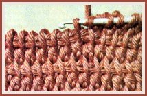 Ne jamais laisser la fin d'un travail sur un "retour": terminer par un rang de mailles serrées, faite comme un "aller", mais en fermant chaque boucle au fur et à mesure. Cette photo, ainsi que la photo 4, montrent clairement l'aspect du point tunisien simple.