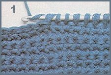 Rg de base: piquer le crochet dans la 2ème m. chaîn. à partir du crochet, passer le fil autour du crochet (1 jeté) et le ramener à travers la m. (tirer 1 boucle) *piquer le crochet dans la m. suiv., 1 jeté, tirer 1 boucle*. Rép. de * à *. Le nombre de m. sur le crochet doit être le même que celui des m. chaîn. montées.