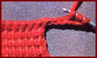 Pour augmenter une maille au début d'un rang sur l'endroit, ou à droite du travail, faire 1 m. chaîn., puis piquer le crochet sous le brin horizontal entre le 1er et 2ème brin vertical, faire 1 jeté, et tirer 1 boucle, puis, continuer à piquer dans le brin vertical suiv., et tous les autres comme dans les rangs précédents.