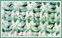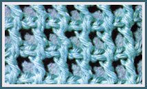 Rg de base: 2 jetés, piquer le crochet dans la 3ème m. chaîn. à partir du crochet, 1 jeté et tirer 1 boucle, 1 jeté et couler 2 boucles, *2 jetés, piquer le crochet dans la m. chaîn. suiv., 1 jeté et tirer 1 boucle, 1 jeté et couler 2 boucles*. Rép. de * à *.