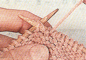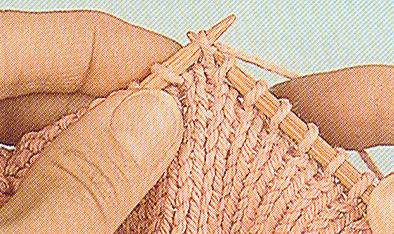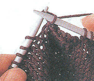 Sur l'endroit de l'ouvrage - 2 m. ens. En tricotant deux mailles ensemble à l'endroit, vous créez une diminution inclinée vers la droite. À l'endroit voulu, insérez l'aiguille droite dans els deux premières mailles de l'aiguille gauche, par le brin avant, tricotez-les ensemble à l'endroit. Vous avez supprimé une maille.