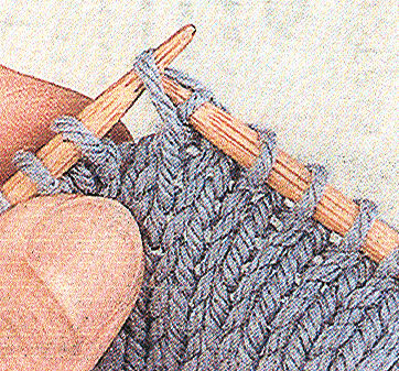 Augm. bar. sur l'endroit: Tricotez jusqu'à l'endroit du rang où vous devez augmenter. Tricotez la maille sur l'aiguille, par le brin avant, comme d'habitude, mais sans la lâcher de l'aiguille. Gardez la maille d'origine sur l'aiguille gauche et tricotez-la de nouveau, mais en passant par le brin arrière: vous avez augmenté d'une maille.
