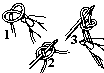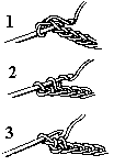 Faire un noeud coulant et resserrer légèrement le noeud pour que le crochet glisse facilement. Passer le fil venant de la pelote sur l'index tendu de la main droite et le maintenir à l'intérieur de la main, contre la paume, avec l'annulaire et l'auriculaire. L'index et le pouce de la main droit servant à tenir l'ouvrage lorsqu'on travaille, le crochet étant tenu par la main gauche.