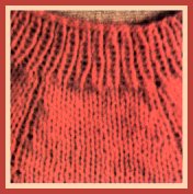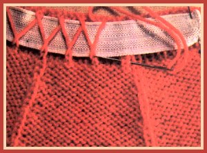- Tricoter la ceinture en côtes 1/1, ce qui lui laisse toute son élasticité et, sur l'envers, enfermer un gros-grain élastique sous une large point de chausson, pour éviter les épaisseurs d'un ourlet.