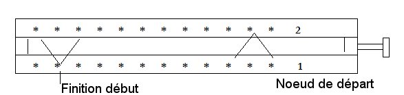 - Tasser la maille restante sur le clou suivant (qui est libre) et répéter l'opération jusqu'à ce qu'il ne reste plus qu'une maille.