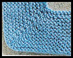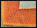 3ème rg: trav. en côtes jusqu'à la m. de l'angle, faire 1 augmentation (relever le fil qui se trouve entre la m. que l'on vient de tricoter et la maile à tricoter, et le tricoter comme une maille après l'avoir tordu sur lui-même) tricoter la maille de l'angle à droit, faire 1 aug., cont. en côtes jusqu'à l'angle suivant, faire 1 aug. Tric. la m. de l'angle à droit, faire 1 aug., term. par des côtes. Rép. les 2ème et 3ème rangs jusqu'à la hauteur désirée, term. par un 3ème rang. Rabattre les côtes.