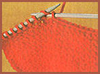 - Piquer l'aiguille à laine dans la 1ère m. (m. endr.) comme pour la tricoter à l'envers, tirer le fil, faire glisser la m. de l'aig.