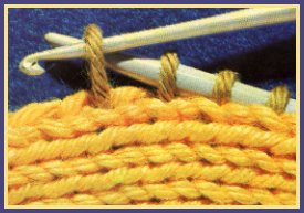 La finesse du crochet aide énormément à tirer les boucles à travers un tricot plus serré. Si l'on relève les mailles sur une encolure ou sur un bord d'une certaine longueur, diviser la longueur en sections au lieu de faire des essais plus ou moins heureux. Certaines instructions indiquent clairement combien de mailles doivent être relevées au dos de l'encolure, sur les côtés, et au milieu du devant; mais les instructions de certains modèles diront simplement de relever par exemple: "124 mailles régulièrement autour de l'encolure".