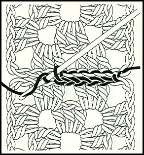 Cet assemblage se fait par un rang de mailles serrées ou un rang de mailles coulées. Placer les deux carrés à réunir l'un contre l'autre, envers contre envers, puis en travaillant sur l'endroit, pour chaque maille serrée ou chaque maille coulée; piquer le crochet en prenant ensemble le fil intérieur d'une maille de chaque carré. Cet assemblage peut se faire sur l'endroit ou l'envers.