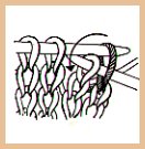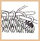 - Piquer à nouveau dans la 2ème m. (m. env.) d'arrière en avant (on prend le 2ème brin de la maille); tirer le fil.