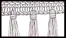 NOTE: Si vous désirez des franges d'une longueur de 20 cm, il faut faire des longueurs de 40 cm. Donc doublez toujours la longueur désirée.