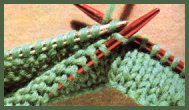 Monter le nombre de mailles nécessaire et travailler comme l'ourlet en jersey, en tricotant un rang de moins après la ligne de pli (on se trouve sur l'endroit du travail). Avant de continuer l'ouvrage, relever les mailles de montage avec une aiguille supplémentaire. Plier l'ourlet pour placer pour placer ces mailles derrière les mailles du travail, puis tricoter un rang en prenant ensemble, chaque fois, une maille du travail et une maille de l'aiguille supplémentaire. Continuer en jersey en commençant par un rang à l'envers. On obtient ainsi un ourlet souple et élastique.
