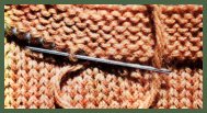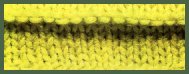 Lorsque le tricot est terminé, laisser les mailles sur l'aiguille, au lieu de les rabattre, et plier la hauteur désirée pour l'ourlet sur l'endroit du travail, pour que l'envers du tricot forme l'ourlet. Coudre le long du bord en prenant alternativement une maille de l'aiguille et une maille du tricot. Méthode idéale pour finir encolures ou jupes tricotées en partant de la taille. On peut aussi plier la hauteur de l'ourlet sur l'envers du travail pour former un bord en jersey endroit.