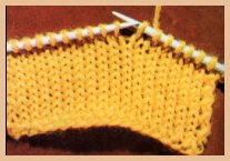 - Maille glissée à l'envers dans un rang tricoté à l'endroit: