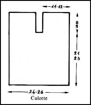 Monter 86 m., tricoter en point mousse. À 18 cm de hauteur totale, rabattre à chaque extrémité: 1 fs 30 m. Il reste 26 m. Continuer en rabattant 1 m. à chaque extrémité tous les 14 rgs, 4 fois. À 33 cm de haut. tot., rabattre les 18 m. restantes.