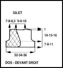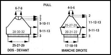 Comme le dos mais ne pas faire les 2 dernières dim. du raglan.