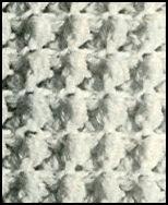 Faire une chaînette de 131 ml avec le crochet # 4; faire 1 rang de ms et continuer en point fantaisie.
