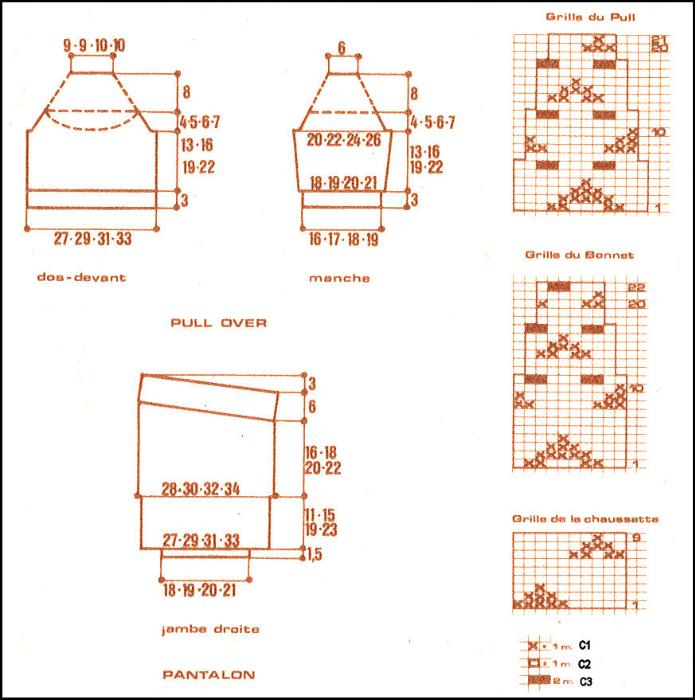 en tric. 4 rgs jersey endr., puis le motif jacquard. Tric. 4 rgs jersey endr., puis tric. 1 rg comme suit: