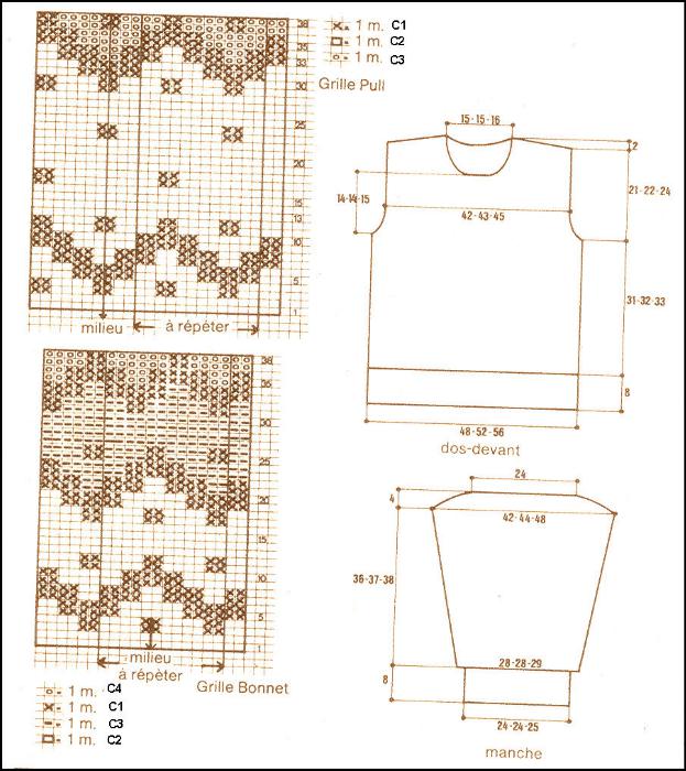 C4 = 4 pelotes+ Bonnet: C2 = 2 pelotes C1 = 1 pelote C3 = 1 pelote C4 = 1 pelote