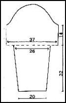 15ème rg: *4 m. endr., 1 jeté, 1 surjet simple, 1 jeté, 1 surjet double, 1 jeté, 2 m. ens. à l'endr., 1 jeté, 4 m. endr., 16 m. env.*. Rép. de * à *