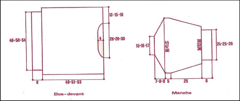 à gauche: 9 fs 1 m. ts les 3 rgs, 1 - 2 - 3 fs 1 m. ts les 2 rgs.